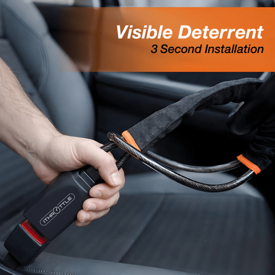 The iThrottle steering wheel lock provides a highly visible and robust physical deterrent that prevents thieves from stealing your vehicle, forcing them to move on to easier targets.